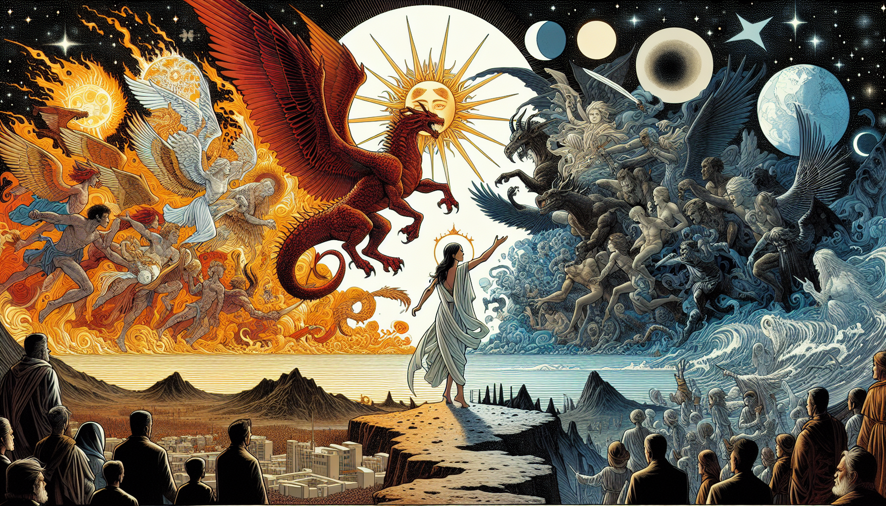 Michael and His Angels: Represent God’s forces engaged in a spiritual war against Satan and his demons.